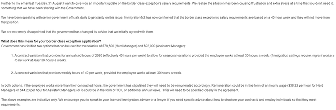 Opinion: INZ’s kneejerk reaction is understandable & justified, MBIE & Immigration NZ are required to have hourly rate visibility on all class exemptions, and all Visa’s for that matter.Dairy NZ’s not employing the appropriate expertise to understand the Immigration framework of the class exemption, appears to be the primary catalysts for this.
